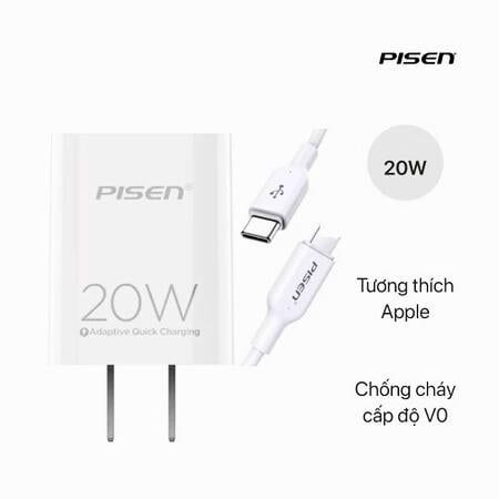 Củ sạc nhanh Pisen 20W, 5V-3A, tự động ngắt điện khi đầy chính hãng bảo hành 1 đổi 1 trong 12 tháng