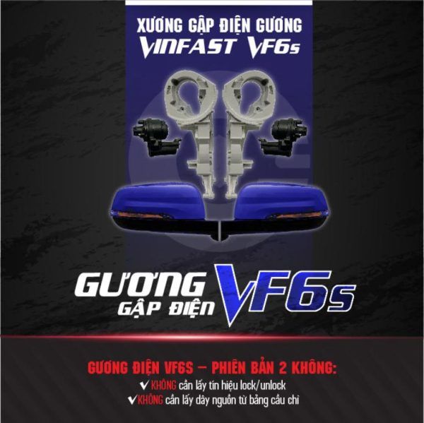 - Sản phẩm gương gập điện: Đảm bảo sản phẩm bạn nhận được là chính hãng và phù hợp với xe VinFast VF6S.