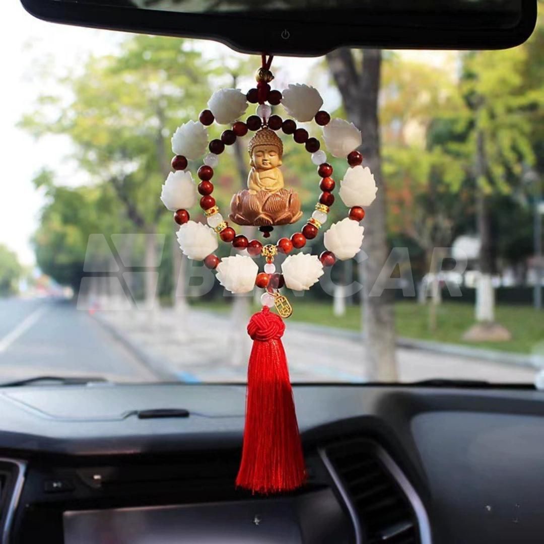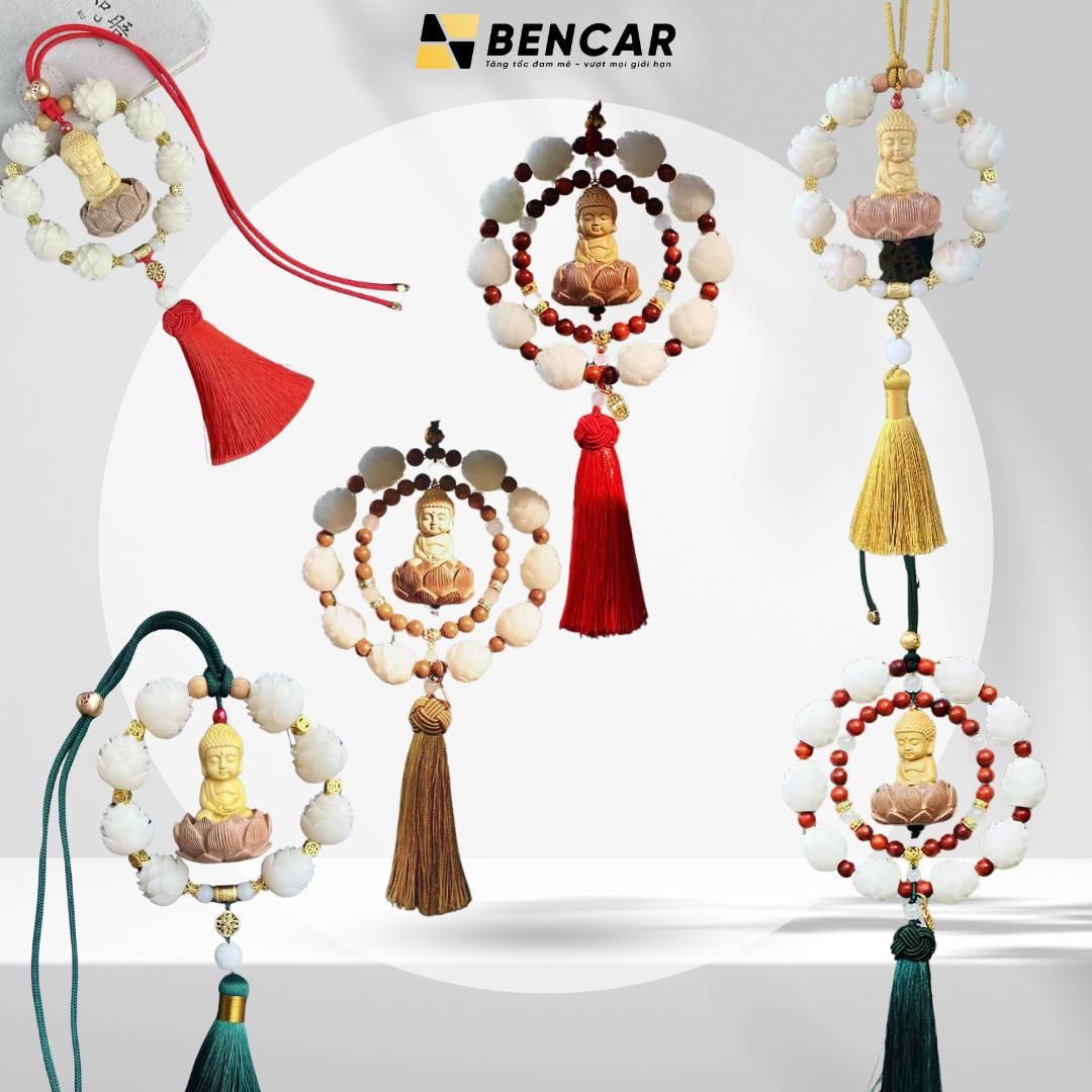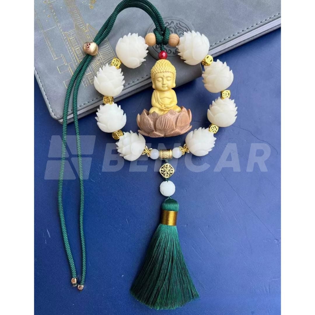 Khánh Phật Liên Hoa Sen Trắng Gỗ Hoàng Dương Treo Xe Ô Tô - Vạn Sự Bình An