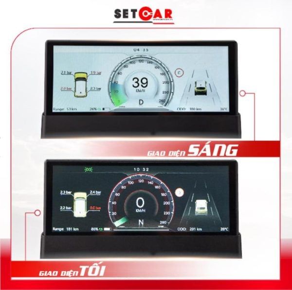 Một trong những tính năng nổi bật của màn hình ODO SetCar là khả năng cung cấp thông số áp suất lốp, giúp người lái nhanh chóng phát hiện vấn đề về lốp và kịp thời xử lý, tránh các sự cố không mong muốn. Bên cạnh đó, màn hình còn hiển thị tín hiệu đèn xi nhan, giúp bạn dễ dàng kiểm soát khi chuyển làn hay rẽ, tăng cường sự an toàn khi tham gia giao thông.
