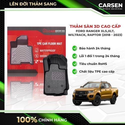 - Thảm lót sàn xe Ford Ranger có độ hoàn thiện tối đa, chính xác về kích thước và chuẩn form từng đời xe 100%, ôm sát và phủ kín toàn bộ sàn xe.