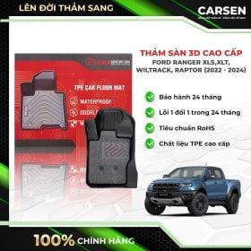 Carsen liên tục cập nhật, tuỳ chỉnh về thiết kế thảm lót sàn xe Ford Ranger phù hợp với từng đời xe. Có thể kể đến như: thảm sàn Ford Ranger XLS, XLT, Wildtrack, Raptor 2017-2021; thảm lót sàn xe Ford Ranger 2023, thảm trải sàn ô tô Ford Ranger Wildtrack, Raptor 2022-2024 là phiên bản mới nhất.